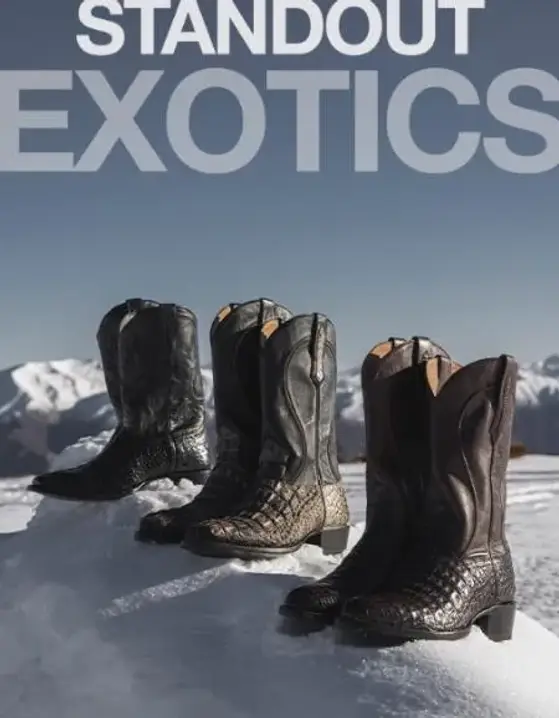 Premium exotic boots crafted with top-quality pirarucu, snake, and caiman skins for bold western style. Shop in store today!